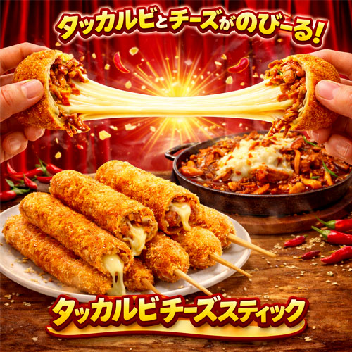 「タッカルビチーズスティック」は、甘辛スパイシーな鶏肉の旨みと、濃厚チーズのコクを一度に楽しめる、食べごたえ抜群のスティックフライです。