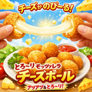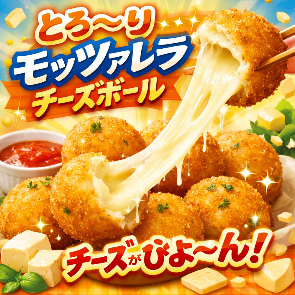「モッツァレラチーズボール」は、モッツァレラチーズを100%使用した、チーズ好きのための一口サイズフライです。
