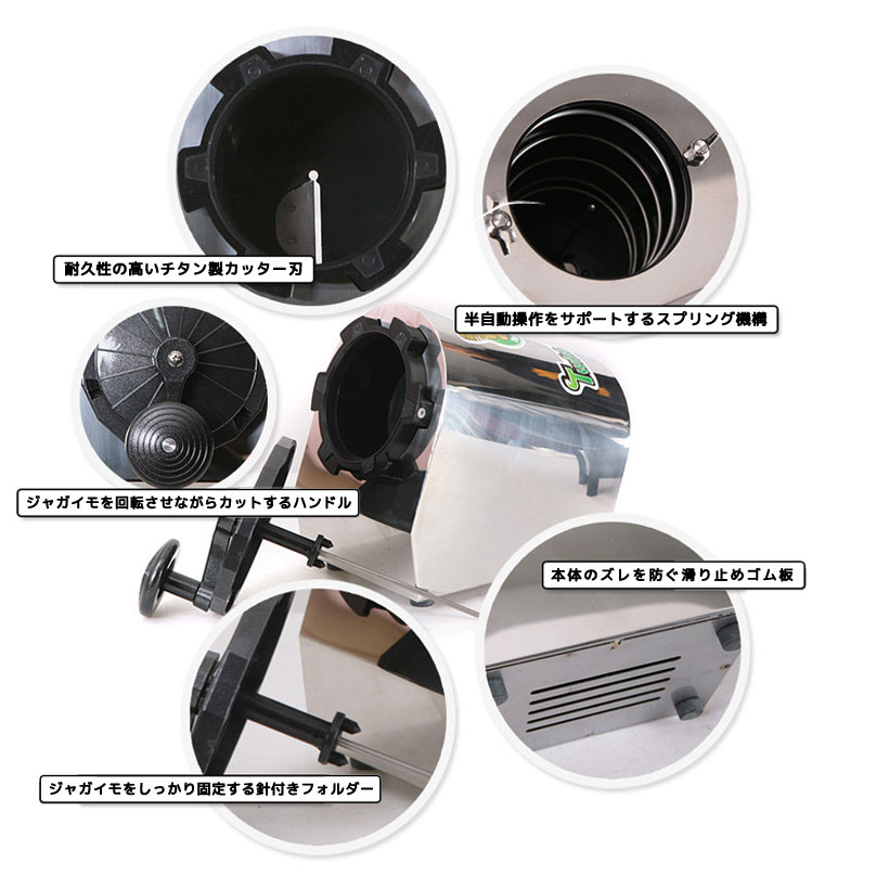 ※本製品はじゃがいも専用カッターです。その他の硬い野菜・冷凍食材には使用しないでください。